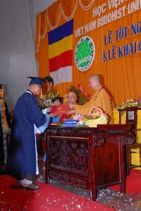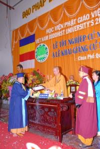 10g30: Trao bằng cử nhân cho 12 vị cử nhân là Phật tử, tham gia học khóa VII. Có vị đến 87 tuổi vẫn tham gia học như Phật tử Minh Dũng.