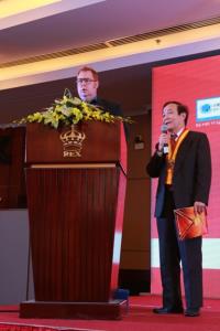 Ông Thomas Bains - Hiệu trưởng ĐHKLTG phát biểu chúc mừng