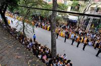 | Toàn bộ các tuyến phố Quán Sứ, Trần Hưng Đạo, Phan Chu Trinh, nơi đoàn rước đi qua đều được cấm đường để phục vụ cho nghi lễ. |