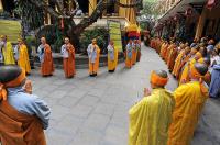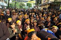 | Các môn đồ pháp quyến cùng tăng, ni sinh xếp hàng tiễn biệt thầy. |