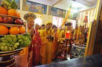 | Đoàn rước với sự tham dự của hàng nghìn người xếp hàng kéo dài trên phố. |