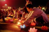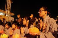 | Đêm hội hoa đăng diễn ra các khóa lễ theo đúng nghi thức Phật giáo,