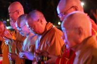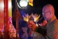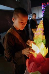 | Các tăng ni đang thắp nến chuẩn bị cho đêm hội hoa đăng. | |