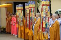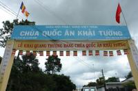 Lễ Thượng Bảng Chùa Quốc Ân Khải Tường - An Vị Tôn Tượng Phật Ngọc Chùa Quốc Ân Khải Tường: Niêm hương tham lễ Tam Bảo; Pháp ngữ sái tịnh đàn tràng Tụng Chú Đại Bi); Đọc kệ khai quang; Thượng bảng chùa.