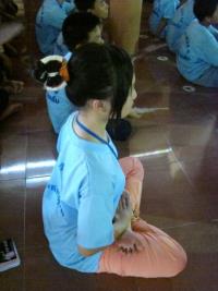 Qua đó, thầy chia sẻ với hội chúng phương pháp để có được an định trong tâm hồn, chính là quán niệm hơi thở, thực tập ngồi Thiền. Các bạn thanh thiếu niên vốn quen hiếu động đã tỏ ra rất tò mò và thích thú đối với cách đếm hơi thở mà thầy hướng dẫn. Các bạn hít vào, thở ra theo sự chỉ dạy của thầy thật nghiêm túc. Đến phần xả thiền theo thứ tự khoa học mà thầy đưa ra làm cho các bạn vui cười, vừa giúp các bạn thấy khỏe hơn trong khí trời oi bức của buổi chiều mùa hạ.