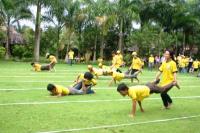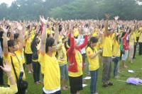 Thể dục buổi sáng trước khi hành thiền - Ảnh: V.Giang