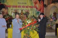 Nhân dịp này TT Thích Thanh Nhiễu – thay mặt GHPGVN tặng hoa chúc mừng bà Trần Minh Ngà - đại diện các nữ cơ quan chính quyền.