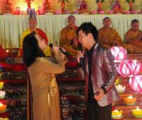 Hiền có mặt, tham dự suốt buổi lễ và thể hiện sự thành tâm cao độ khi