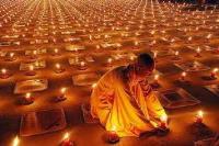 Trong Phật giáo, tổ chức lễ có đốt nến trong một sân chùa có tường cao