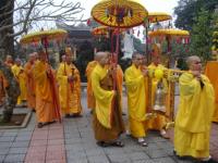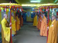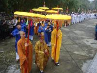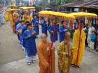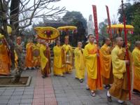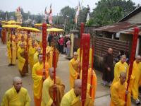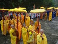 Môn đồ pháp quyến cung nghinh bát hương và di ảnh đại lão Hòa thượng Tân viên tịch