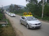 20 chiếc ô tô đi từ chùa Giác Lâm qua đường Duy Tân, Ngự Bình, Tam Thai