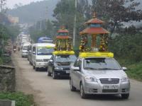 Xe cung nghinh bát hương và di ảnh Đại lão Hòa thượng Tân viên tịch