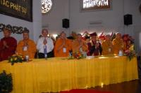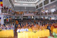 8g58: HT.Thích Đạt Đạo, Phó Viện trưởng Học viện đọc báo cáo kết quả đào tạo của Học viện Phật giáo tại TP.HCM. Theo báo cáo, 830 Tăng Ni sinh viên thuộc khóa VII đã tốt nghiệp.