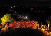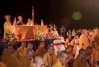 sáng rực rỡ. Trước giờ hành trì đại lễ gió thổi mạnh, mây vần vũ, sấm