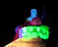 lên, ánh sáng rực cả bầu trời, và trên đỉnh núi, Đại Phật tượng cũng