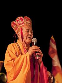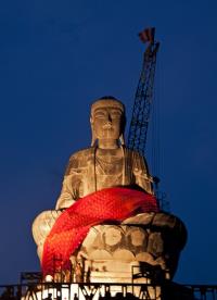 Chư Tăng tụng kinh dưới chân Đại Phật tượng