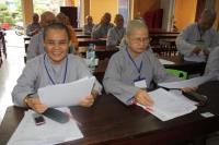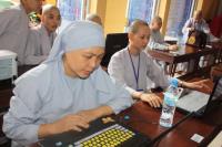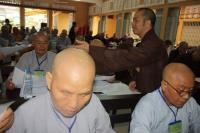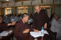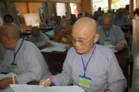 Toàn cảnh chư tôn đức tăng ni trong Ban khảo hạch chấmbài thi của các giới tử