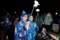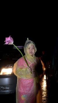 Mặc dù dưới trời mưa to nhưng Thầy Tâm Mẫn vẫn nhất tâm hành trì...