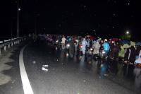 Khoảng hơn 2h sáng, trên đoạn đường cao tốc, gần cầu Pháp Vân. Đã có rất nhiều Phật tử tình nguyện quét đường cho Thầy hành trì