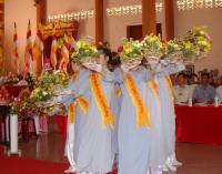 Phật tử dâng hoa cúng dường - Ảnh: Giác Hiền