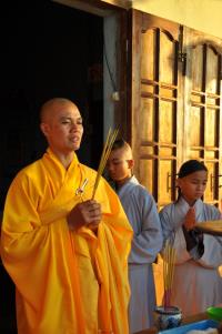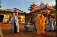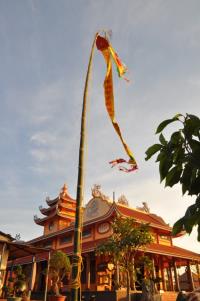 Vào cuối chiều nay, thầy trụ trì và Tăng chúng niêm nhang treo cây nêu ngày tết