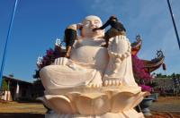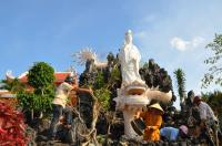 thầy trụ trì Thích Chiếu Ý cũng xắn tay súc bể nước dưới tượng Quan Âm để chuẩn bị đón tết