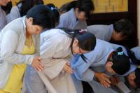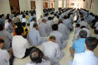 Buổi sáng, sau khi quý Phật tử dùng điểm tâm xong, mọi người ổn định chỗ tu tập và được Đại đức Thích Tâm Trung phổ biến, hướng dẫn một số nội quy để ngày tu được diễn ra trang nghiêm, thanh tịnh và đạt hiệu quả cao.