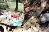 trong am thờ công chúa Mỵ Châu, bức tượng đá mất đầu linh thiêng liên