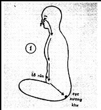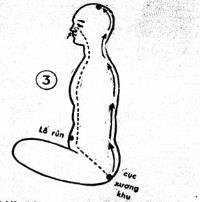 2) Nín thở: Nín thở nhíu hậu môn và dùng tư tưởng đưa đi theo đường xương sống thẳng lên trên đầu (xem hình 3).