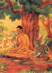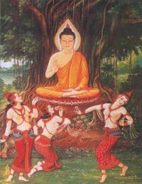 18. Vì lợi ích cho chư thiên và nhân loại, đức Phật đã nhận lời thỉnh cầu của Phạm Thiên quyết định rời cội Bồ-đề lên đường hóa độ.
