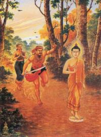 30. Chàng Vô Não đang trên đường tìm kiếm sát hại người thứ 1000, khi gặp đức Phậtchàng ra lệnh Ngài dừng lại. Đức Phật nói rằng: “Ta đã dừng lại từ lâu rồi, nghĩa là đã dừng sự sát hại, còn người thì chưa”. Vô Não giật mình tỉnh ngộ và xin xuất gia, sau đó chàng chứng quả vị A La Hán.