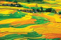 Ruộng bậc thang của thung lũng Mù Cang Chải nhìn từ đèo Khau Phạ