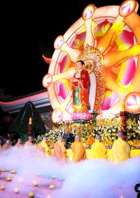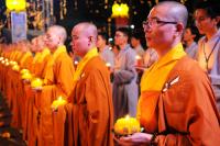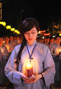 Đây là lễ hội lớn nhất của người tu theo pháp môn Tịnh độ được tổ chức hàng năm. Lễ hội quy tụ số lượng lớn người tu hành và phật tử tham gia. Lễ hội này đã được trung tâm sách kỷ lục Việt Nam xác lập là lễ hội phật giáo lớn nhất Việt Nam. Mở màn đêm hội, Trưởng ban tổ chức đón nhật ánh sáng từ bàn thờ Phật. Ánh sáng từ đó được chuyền đến cho các nhà tu. Hàng nghìn phật tử cũng chuyền nhau thắp ánh sáng hoa đăng. Một thiếu nữ lặng lẽ trong giây phút trang nghiêm của buổi lễ. Rất đông thanh niên cũng tham gia buổi lễ. Các phật tử cùng nguyện cầu cho thế giới hòa bình. Ánh sáng tràn ngập trong không gian lễ hội. Sân chùa Hoằng Pháp nhìn từ trên cao. Buổi lễ kéo dài đến tận đêm khuya. Thầy trụ trì Thích Chân Tính cho biết, để chuẩn bị cho buổi lễ, chùa đã chuẩn bị hơn 50.000 ổ bánh mì, hơn 10.000 suất cơm chay cùng lịch để tặng phật tử. Chí Giác Thông