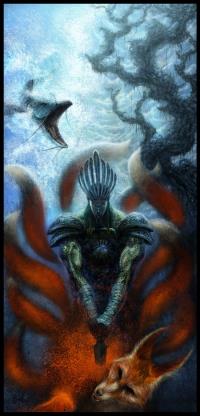Lạc Long Quân với chiến công tiêu diệt quái vật Hồ Ly và Ngư Tinh.