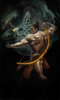 Thạch Sanh trong cuộc chiến với Trăn Tinh,một tác phẩm của họa sĩ Phan Vũ Linh.