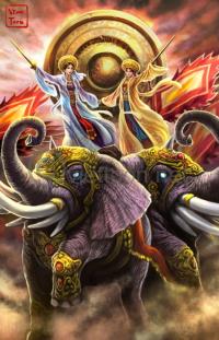 Hai Bà Trưng cưỡi voi ra trận. Voi trận