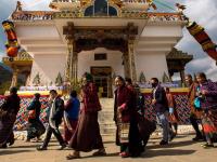 Người dân Bhutan rất kính trọng hai đức vua. Các nhà sư đang tổ