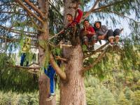 Cuối tuần, người dân mặc quần áo bình thường. Những cậu bé leo lên