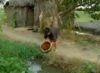 Thuận tay, người mẹ cầm ngay đòn gánh phan vào chân con. Thằng bé