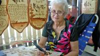 Người phụ nữ ấy gốc Pháp, tên Ginette Lâm. Đã 74 tuổi nhưng bà còn nhanh nhẹn, hoạt bát. Thấy khách bước vào, bà hỏi bằng tiếng Việt lơ lớ: “Xin chào! Bạn cần viết câu gì?”. Đôi mắt vẫn trẻ trung tinh anh, bà thân thiện, cởi mở trò chuyện với mọi người.