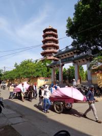Đoàn xe cung nghinh ngang qua trước chùa Từ Đàm