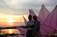 Lê Lợi và tập kết các cành sen sau bia Quốc Học bên dòng sông Hương. Bộ