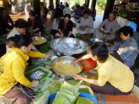 Tạm gác lại việc riêng một ngày, đông đảo Phật tử các nơi đã tụ hội về cùng với quý thầy gói bánh, đón Tết nguyên đán. Những nụ hoa khoe sắc, những đòn bánh quê hương, những nụ cười hỷ lạc ấm tình đạo vị, những bếp lửa hồng sưởi ấm tình người, tình đạo trong tiết trời giá lạnh, những nồi bánh nghi ngút khói lan tỏa khắp nơi đón chờ mùa xuân ấm áp đang về bên hiên.