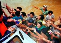 cánh tay đói lả nhận thức ăn cứu trợ ở ngã ba Tuần (Thừa Thiên - Huế)