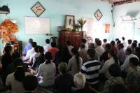 | Đông đảo người ngồi thiền và học thiền tại nhà bà Thu |