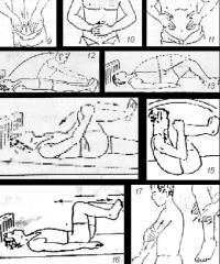 Nằm ngửa ngồi dậy 15 lần: Nằm ngửa, hai chân, hai tay duỗi thẳng, rộng bằng vai, thót bụng nâng đầu lên, lưng rời khỏi giường, ngồi lên, hai tay vươn dần về phía bàn chân, hai chân từ đầu đến cuối để im không nâng lên, tức chỉ dựa vào cơ bụng mà dậy (hình 12).