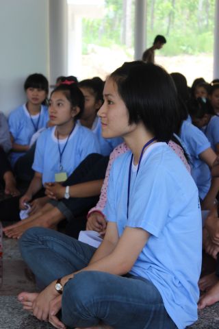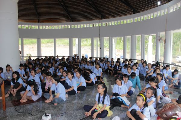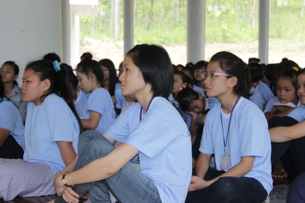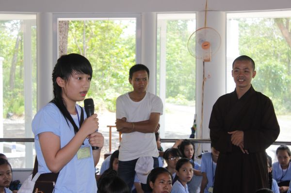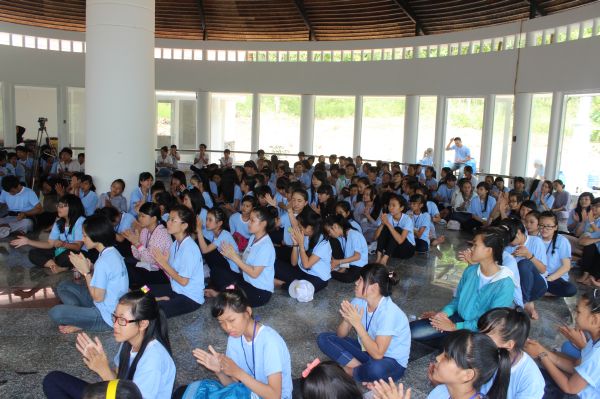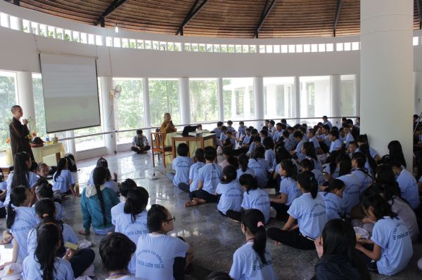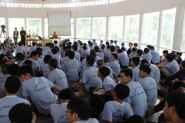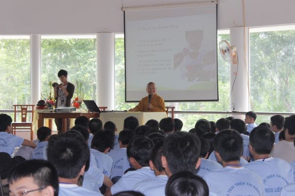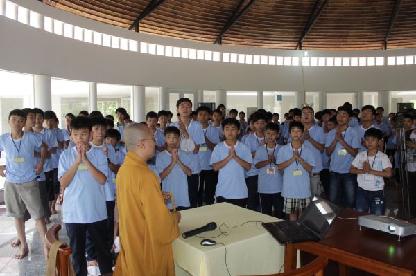 Sau thời pháp thoại của TT. Thích Nhật Từ, đã có gần 100 bạn trẻ đăng ký quy y Tam Bảo. ĐĐ. Thích Hải Trung, Trưởng Ban tổ chức khóa tu đã đối trước đức Phật, quy y cho các em, chính thức làm những người con Phật.