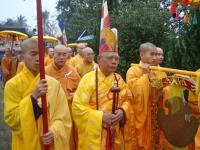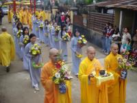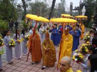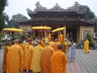 Môn đồ pháp quyến cung nghinh bát hương và di ảnh đại lão Hòa thượng Tân viên tịch