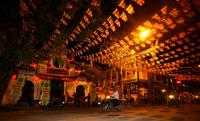 Trên một số con phố, nhà dân đã xuất hiện những lá cờ ngũ sắc tượng trưng cho hào quang tỏa rạng của Đức Phật.