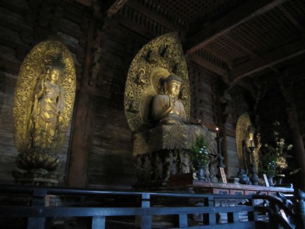 Chánh Điện còn gọi là Kim Đường xây dựng năm794, đến năm 1468 bị hoả hoạn thiêu huỷ và xây dưng lại vào năm 1603 là một toà kiến trúc cao to hùng vĩ và vô cùng thanh tịnh, tuy được xây dựng lại nhưng vẫn tuân theo kích thước và hình dáng ban đầu của đại điện vốn có, Tượng thờ chính trong Kim Đường là đức Phật Dược Sư hai bên có Nhật Quang và Nguyệt Quang Bồ Tát.